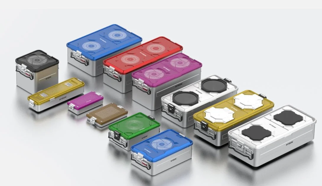 Los sistemas de contenedores de esterilización, ofrecen diferentes mecanismos de filtración en una sola unidad. Se pueden cambiar los filtros en la tapa sin necesidad de adquirir una nueva. Tienen tres opciones de filtración: PTFE, sistema de válvula y Bio-Stop. El sistema PTFE utiliza un filtro de PTFE Teflón de 2000 ciclos. La válvula funciona con Biostop de válvula PTFE y puede usarse durante 5000 ciclos. El sistema Bio-Stop tiene una eficiencia del 99.99 % contra microbios y partículas, también con 5000 ciclos de uso mínimo. Los contenedores se fabrican en cinco tamaños diferentes. Incluyen cestas y accesorios específicos. Además, cuentan con un mecanismo de bloqueo automático y una ventana indicadora de resultado sin abrir la tapa.